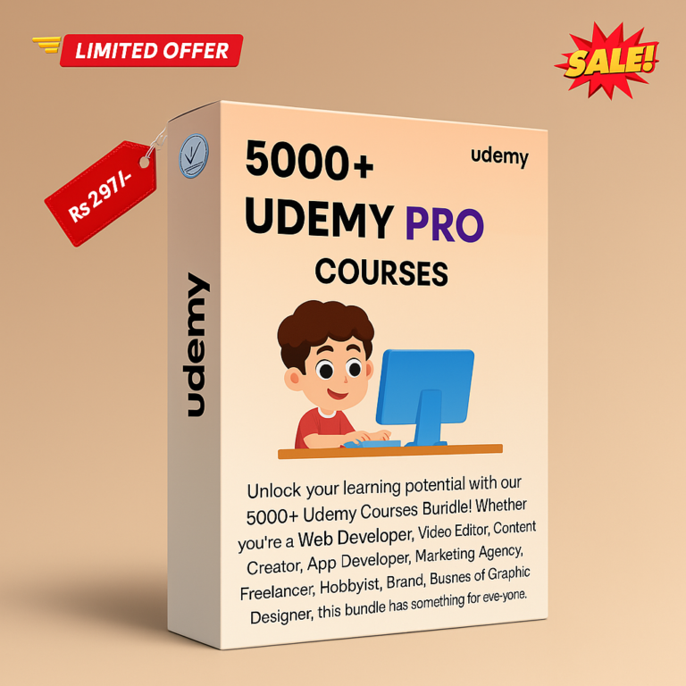 Unlock your learning potential with our 5000+ Udemy Courses Bundle! 🚀 Whether you're a Web Developer, Video Editor, Content Creator, Freelancer, or Business, this bundle has something for you. Access expert-led courses in technology, design, marketing, business, and more—in both English & Hindi! Learn at your own pace and upgrade your skills anytime, anywhere. Don’t miss this chance to grow your career!